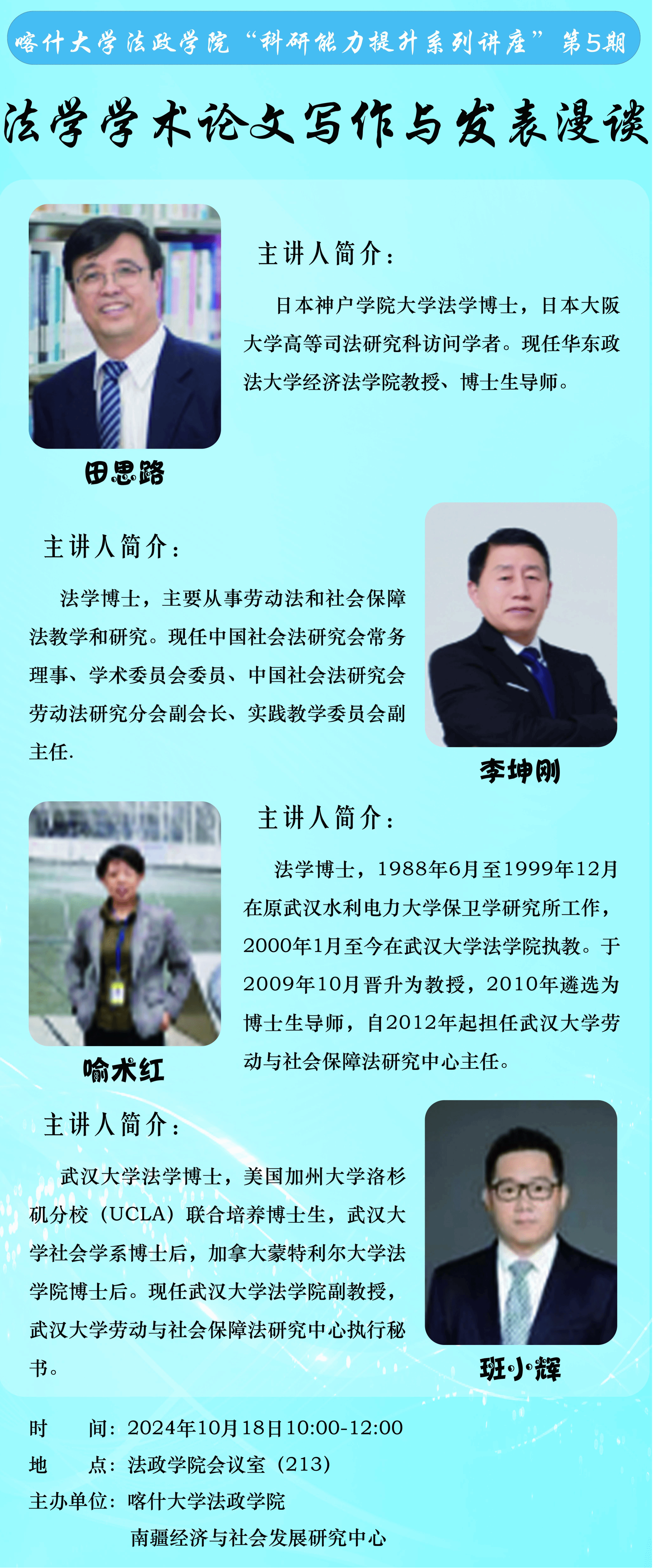 2024年10月18日上午,由法政学院、南疆经济与社会发展研究中心举办的法政学院“科研能力提升系列讲座”第5期在法政学院213会议室举行。