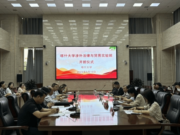 2024年5月20日,喀什大学举行了“涉外法律和贸易实验班”开班仪式。教务处张伟处长、法政学院杨陶院长、经济与管理学院许志杰副院长、外国语学院阿地力江·穆罕默德依明副书记以及深圳国际仲裁院喀什分院陈思维副秘书、喀什地区自贸办黄保亮教授、喀什地区自贸办于翔主任、法政学院法学教研室徐统坤主任、外国语学院英语系郭少冲主任、涉外法律和贸易实验班任课老师和实验班全体学生出席开班仪式。会议由法政学院赵雪军副院长主持。