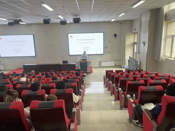2024年6月4日上午,由喀什大学法政学院与南疆经济与社会发展研究中心举办的法政学院实务系列讲座第二期在D001报告厅隆重举行。中国投资协会投资咨询委员会副会长、北京天达共和律师事务所资深合伙人徐斌律师带来了主题为《光伏、风电项目并购的法律要点》的讲座。本次讲座由法政学院党总支书记迪力夏提·阿木提主持,法学专业教师代表和学生代表线下共同参与。