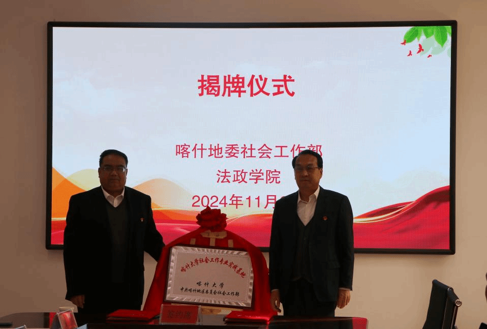 签约仪式上还进行了喀什地区社会工作人才培养基地、喀什地区社会工作研究中心、喀什大学社会工作专业实践基地揭牌仪式,并为受聘客座教授颁发聘书。
