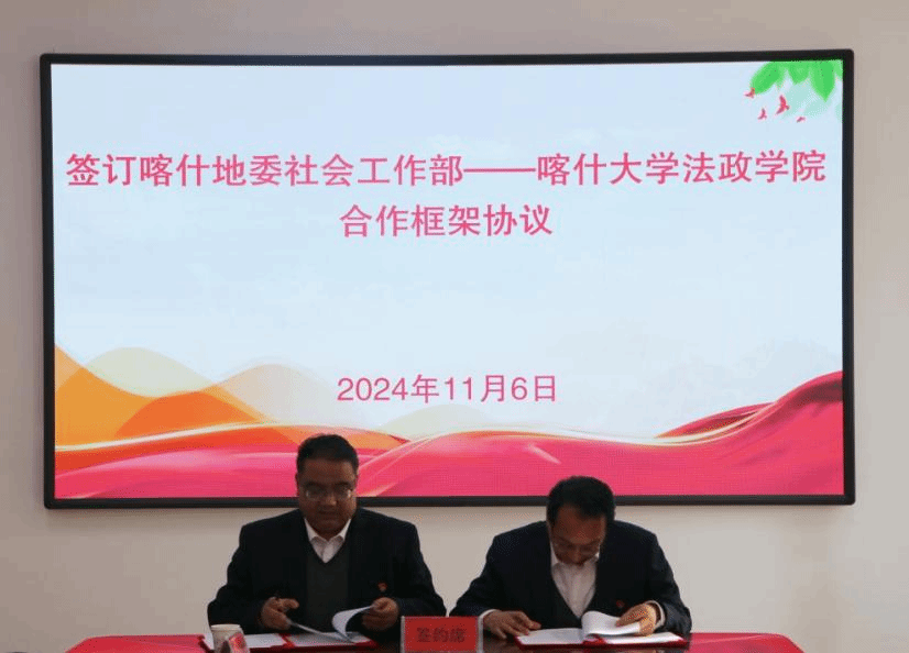 2024116日,喀什大学法政学院与喀什地委社会工作部合作签约仪式在法政学院213会议室举行。