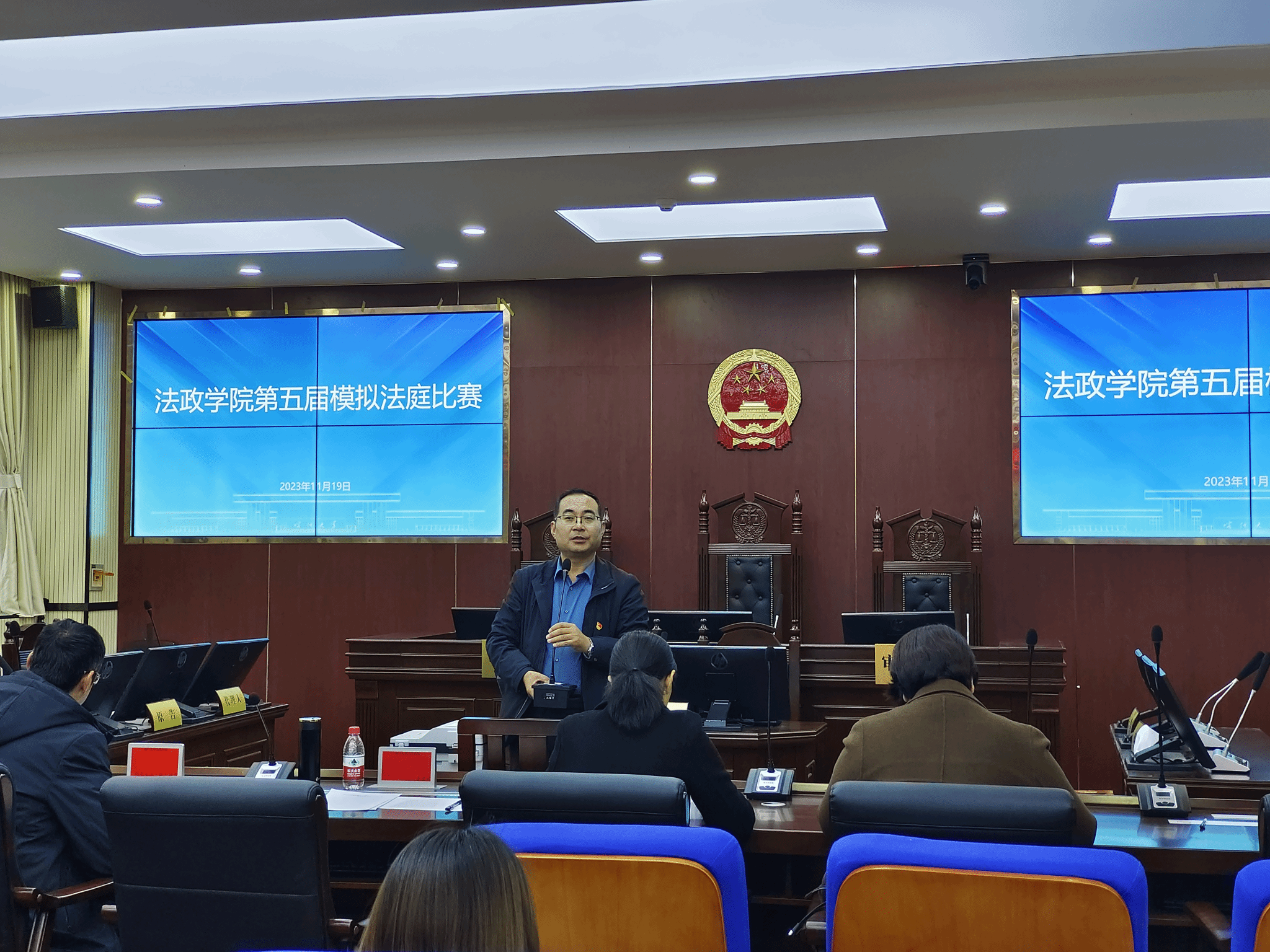 为进一步加大普法宣传力度,营造全民学法、懂法的氛围,加强法学专业学生学风建设及实践能力,引导学生树立法律意识和法治观念,营造浓厚的学法氛围,法政学院于2023年11月19日在新泉校区智慧模拟法庭举行法政学院第五届模拟法庭比赛。