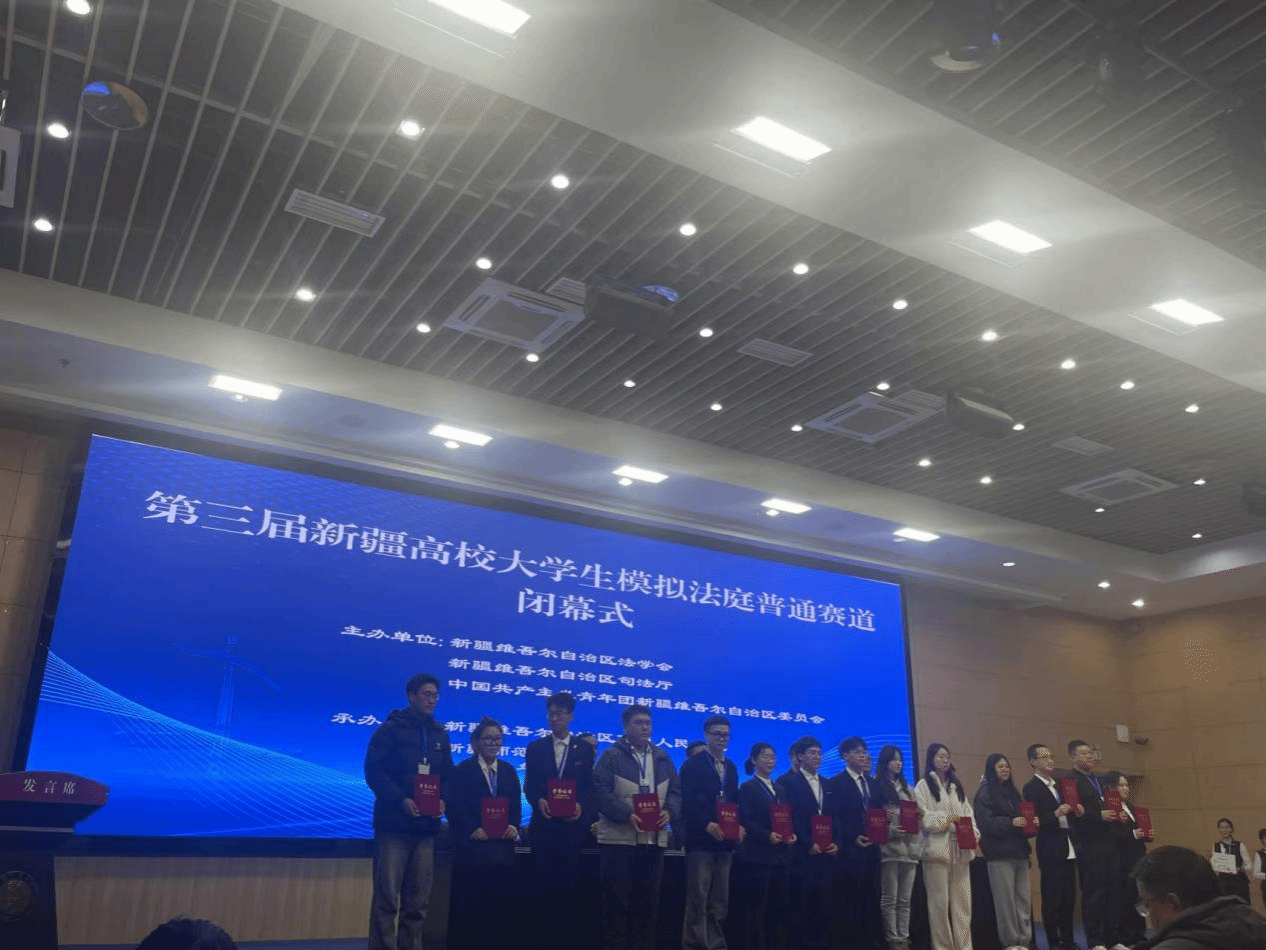 2024年10月19日上午12时30分开始了本次比赛的第一场赛事,喀什大学法政学院代表队作为原告方对阵塔里木大学。在下午17时10分开始了第二场赛事,喀什大学法政学院代表队作为被告方对阵新疆师范大学。经过两天紧张刺激的比赛角逐,喀什大学法政学院代表队学生杨龙杰在本次比赛中荣获“优秀辩手”荣誉,并代表喀什大学法政学院代表队参与领奖。