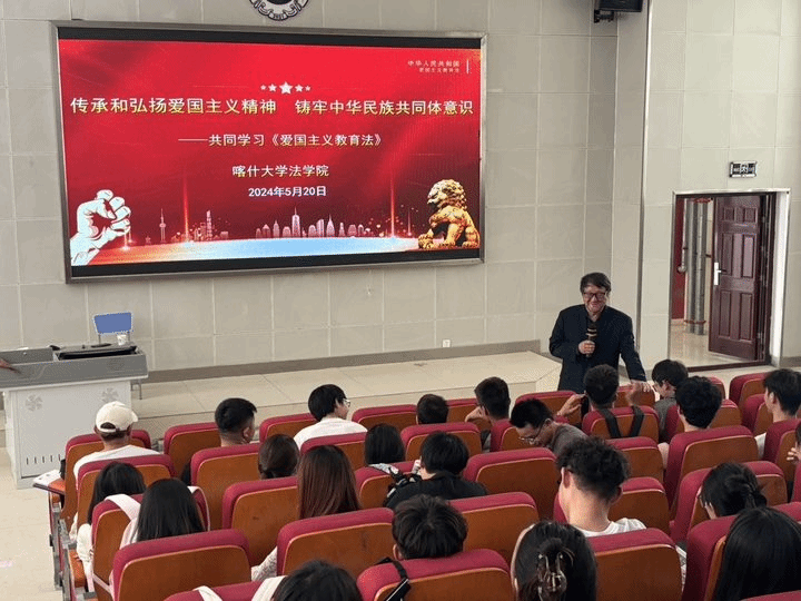 德全英教授的讲座以深入学习贯彻《中华人民共和国爱国主义教育法》为主题,从制定爱国主义教育法的必要性和重要意义、立法指导思想、主要内容以及新疆开展爱国主义教育的实践、大学生如何结合专业贯彻师生爱国主义教育法等方面展开。