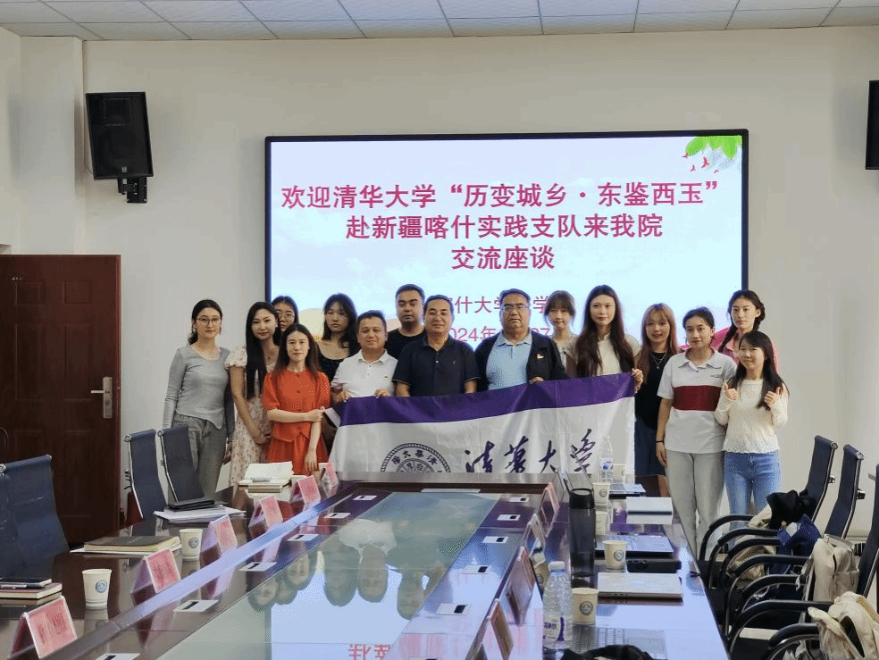 习近平总书记在党的二十大报告中深情寄语广大青年“立志做有理想、敢担当、能吃苦、肯奋斗的新时代好青年”。为深入贯彻落实习近平总书记关于青年工作的重要指示精神,清华大学“历变城乡·东鉴西玉”实践支队于2024年6月27日赴喀什大学法政学院交流座谈,旨在通过社会实践的形式,在实践中受教育、长才干、作贡献,并体悟新时代以来高质量发展取得的新成就,从而在推进中国式现代化的新征程中贡献自己的青春力量。