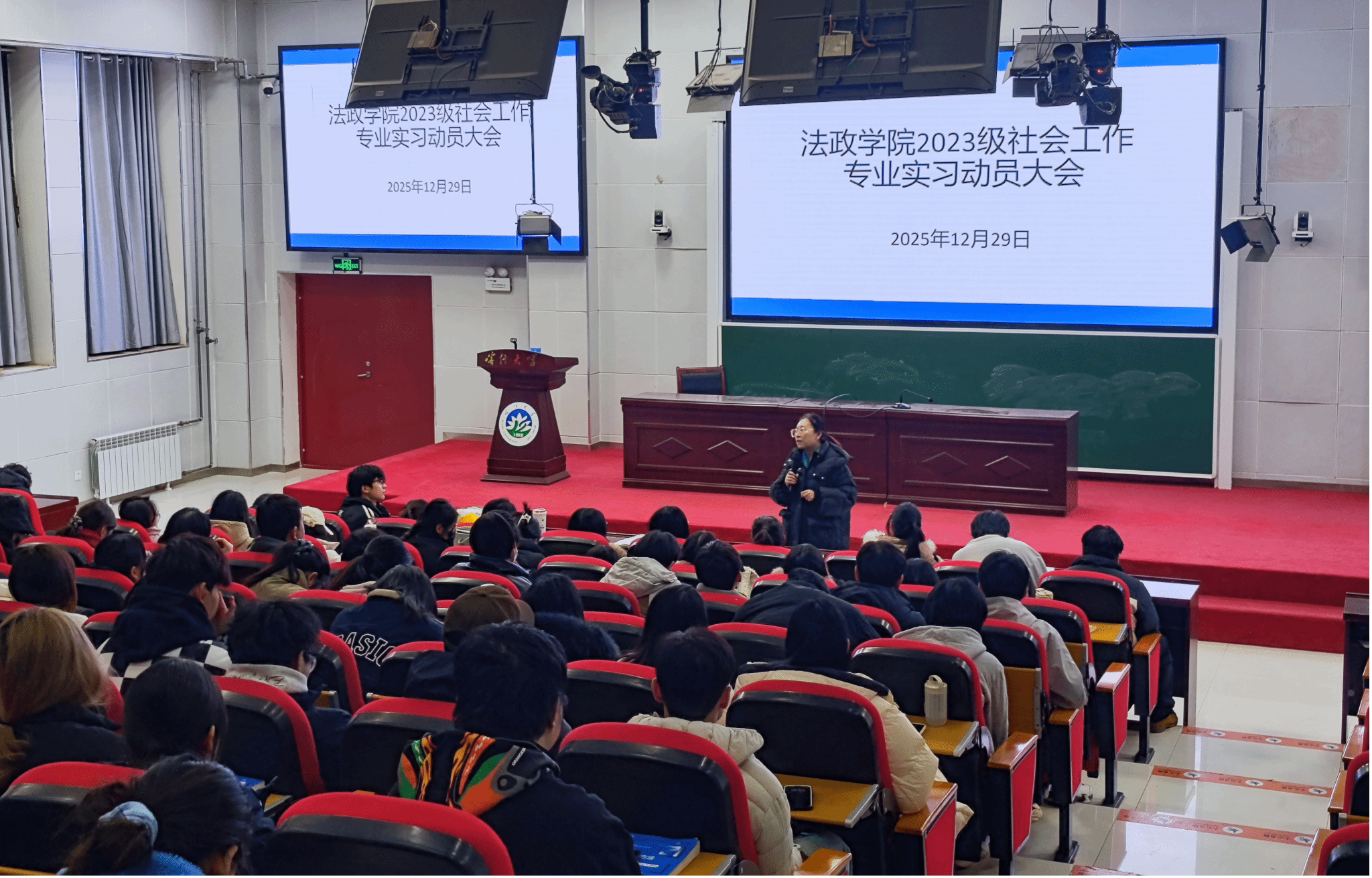 2025年12月29日,喀什大学法政学院召开2023级社会工作专业实习动员大会。社会工作系主任周艳、教研室全体专任教师及2023级全体学生参会。