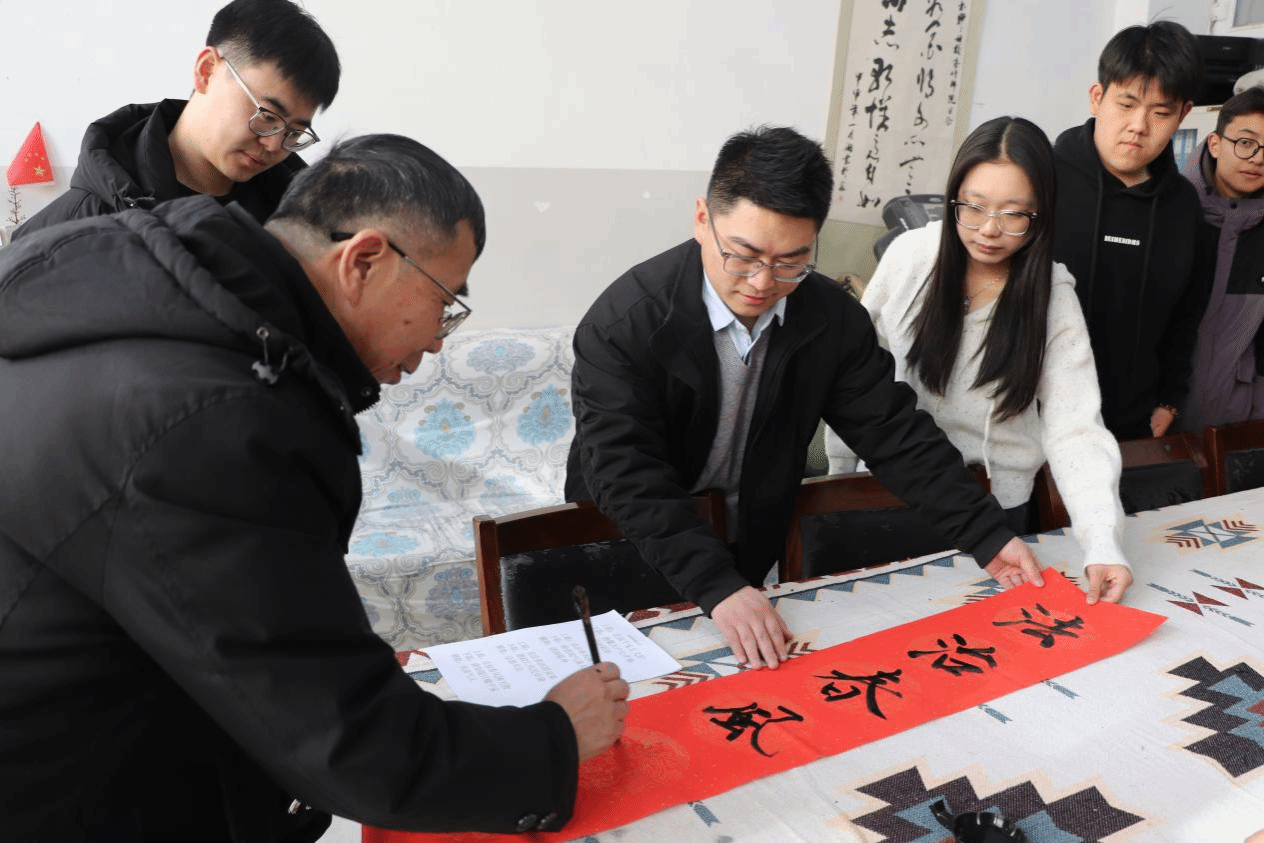 “法治春风吹大地,德治细雨润民心”“学法用法走正道,知法守法享太平”……活动现场,书桌依次排开,笔墨纸砚准备妥当,师生们尽情挥毫,和村民们共同书写蕴含法治元素的春联与“福”字。村民们围在桌前,有的认真观看师生们运笔,有的在志愿者的指导下亲自提笔书写,墨香与欢声笑语交织在一起。这些带着墨香的法治春联,不仅传递着新春的祝福,更将“学法、懂法、守法、用法”的理念以传统文化的形式融入村民心中。