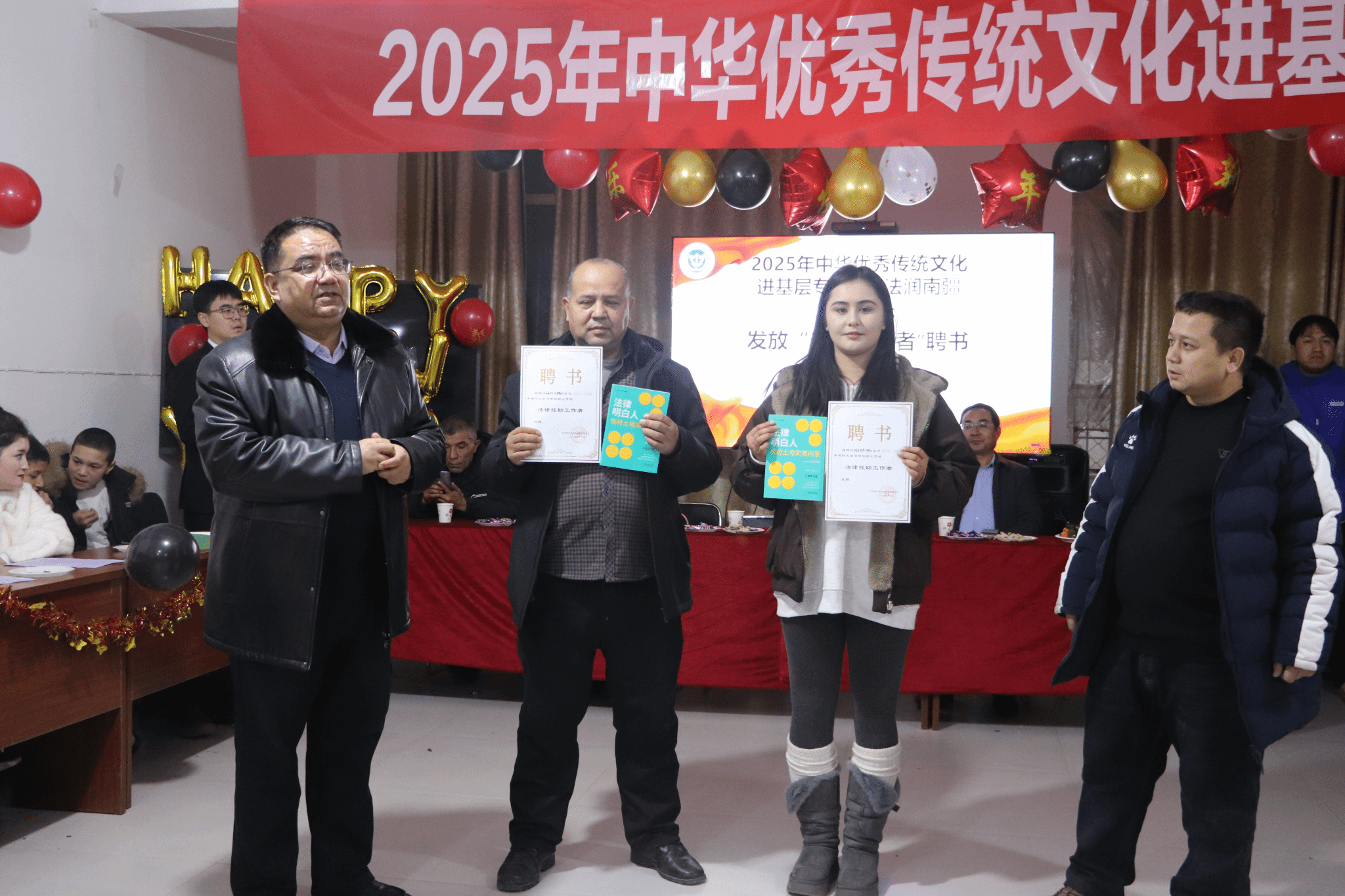 活动现场,各村“法律明白人”接过了沉甸甸的普法志愿者证书和精心准备的法律书籍。这些读本紧扣农村实际,聚焦土地承包、婚姻家庭、邻里关系等常见问题,为基层法治工作添上了实用的“工具包”。一位刚刚领到书的“法律明白人”高兴地说:“这下好了,以后帮乡亲们说道理、解疙瘩,手里有‘法宝’,心里更有底!”
