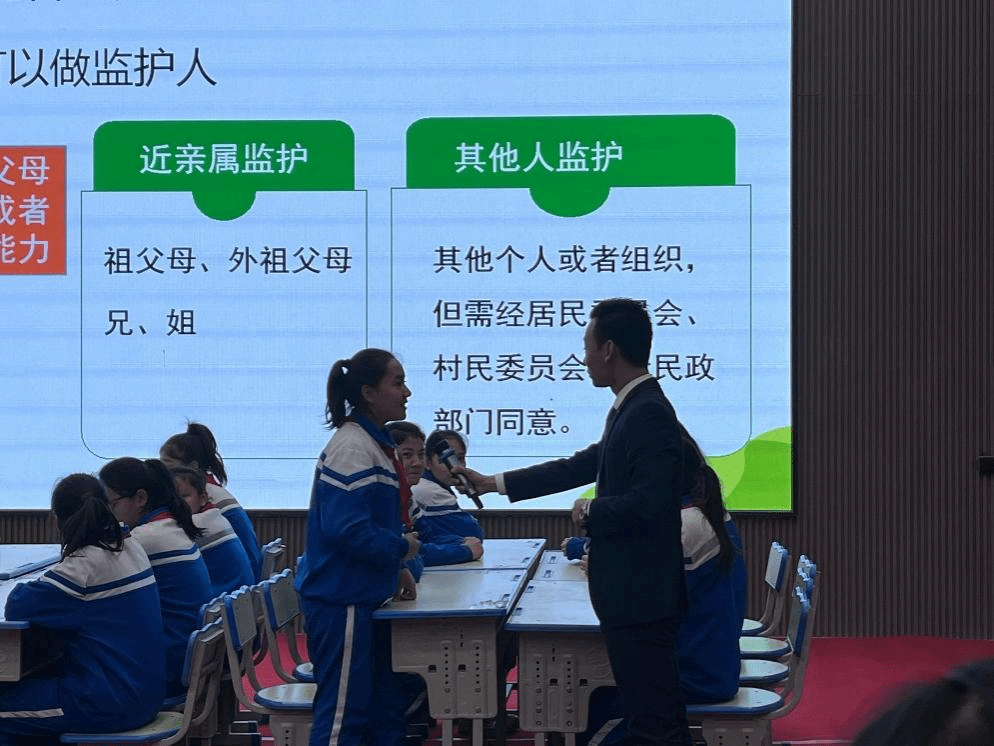 会议第四项,“新雨计划”授课团队中的肖伟东律师现场示范授课。肖律师于2009年入行至今,办理数百件刑事辩护,长期致力于未成年人保护的研究和实践。在本次授课中,他将电影《哈利波特》与未成年人保护相结合,用幽默生动的语言将法律知识传递给同学们,提高了青少年的法治素养和法律意识。