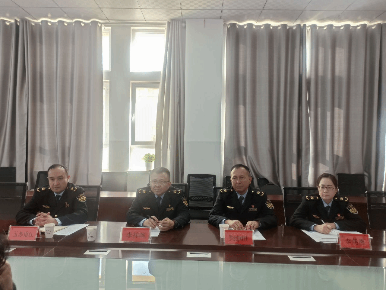 最后,双方初步达成了制定合作框架协议的共识,并准备挂牌。迪力夏提·阿木提同志表示,学院党总支将充分发挥组织协调作用,积极组织专家教授和骨干教师,与喀什执法支队的同志们形成强大合力,共同破解在高质量发展和基层执法过程中遇到的各种难题。法政学院将坚定不移地坚持产教融合的发展道路,积极服务社会主义现代化强国建设。