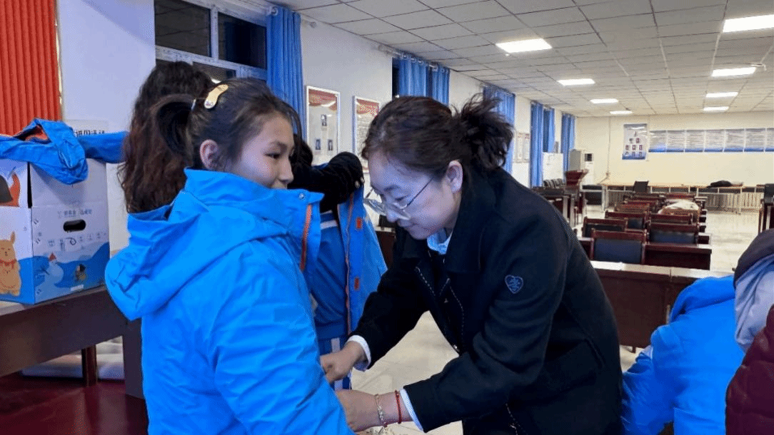 在温暖的氛围中,学院领导和老师亲手为孩子们发放爱心包,帮助他们穿上崭新的冬衣。厚实的衣物和学习用品不仅为孩子们带来了御寒的温暖,更让他们感受到社会的关爱与期盼。孩子们脸上绽放笑容,家长们满怀感激。
