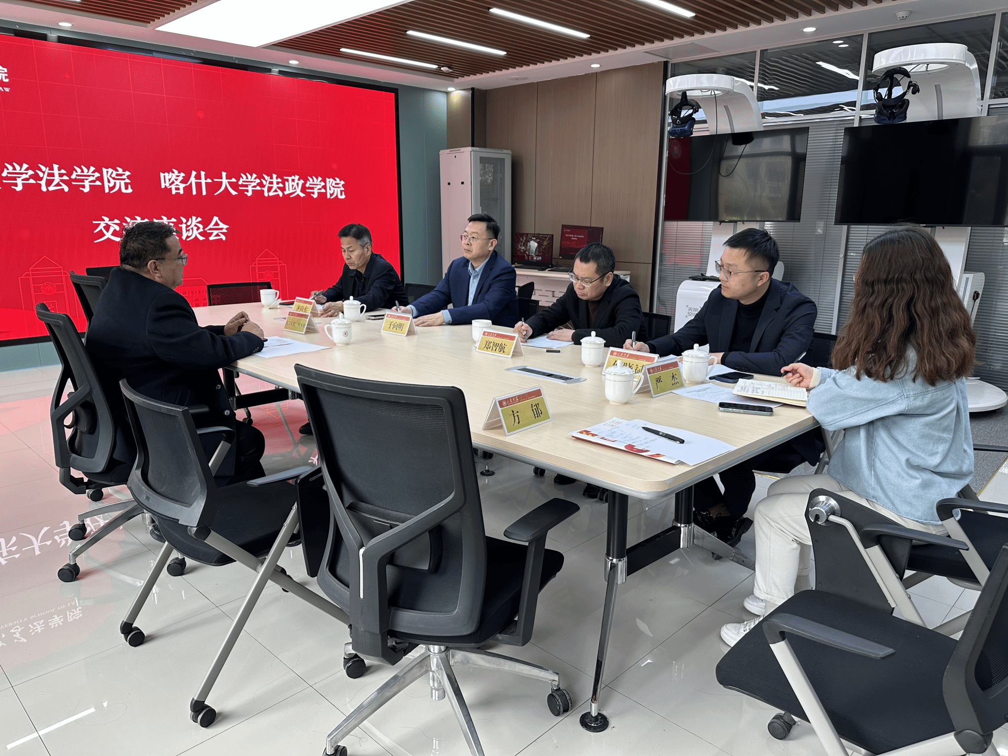 2025年3月26日下午,座谈会在山东大学青岛校区法学院举行,山东大学法学院党委书记于向明、副院长郑智航、副教授何晓斌、副主任齐向东、科研秘书严杰、人事秘书方郁、喀什大学法政学院党委书记迪力夏提·阿木提参加座谈。
